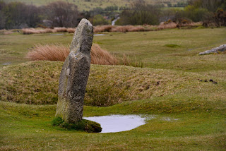 The Moors. Our trip to the south shires of England took us through or around several of the famed English moors--areas of grasslands, heathers, fern, and stone, usually quite desolate,foreboding, and very Hound of the Baskervillean, except that they were all full of walkers or trekkers. Exmoor in Somerset and North Devon was disappointing. It was mostly stonewall-fenced farmland hidden behind tall hedges (see the last blog post). On the way from Penzance (Cornwall) to Tavistock (Devon) we got into more typical moorland on Bodmin Moor. After quite a drive along the southern England coast it was pleasant, even in light rain, to walk a half mile out to Hurler’s stone circle,