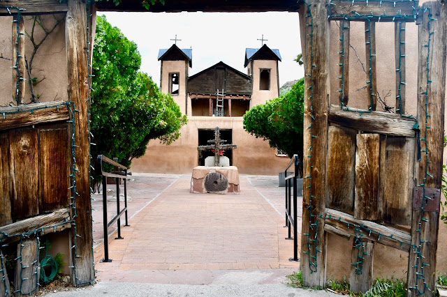Saturday [End of the World Day] was our Taos Day. We took the High Road to Taos which is longer and more scenic than the freeway and would take that road again. We made several stops for photos at vistas and local historic churches, but our best stop was at El Sanctuario de Chimayo in that small village.